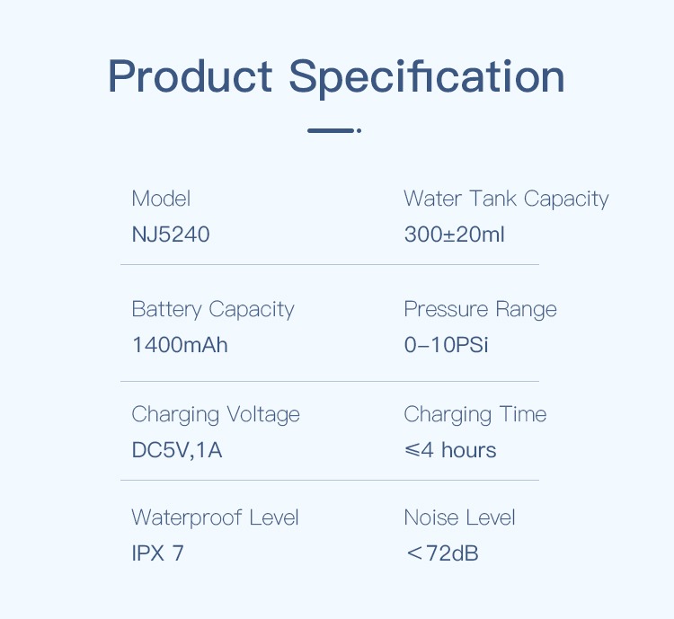 【Type-C genopladeligt】 Næseskylningsenheden er bygget med et 1200mAh genopladeligt batteri, som kan holde 4 uger efter at være fuldt opladet. Med et hurtigt USB-opladningskabel og støjsvag drift. Det er nemt og bekvemt at skylle dine bihuler og trække vejret lettere. (BEMÆRK: Adapter medfølger ikke). |