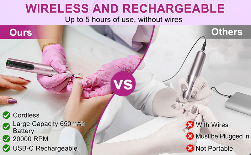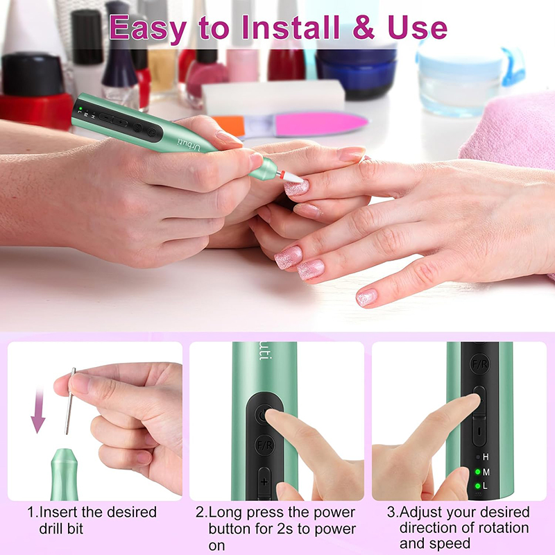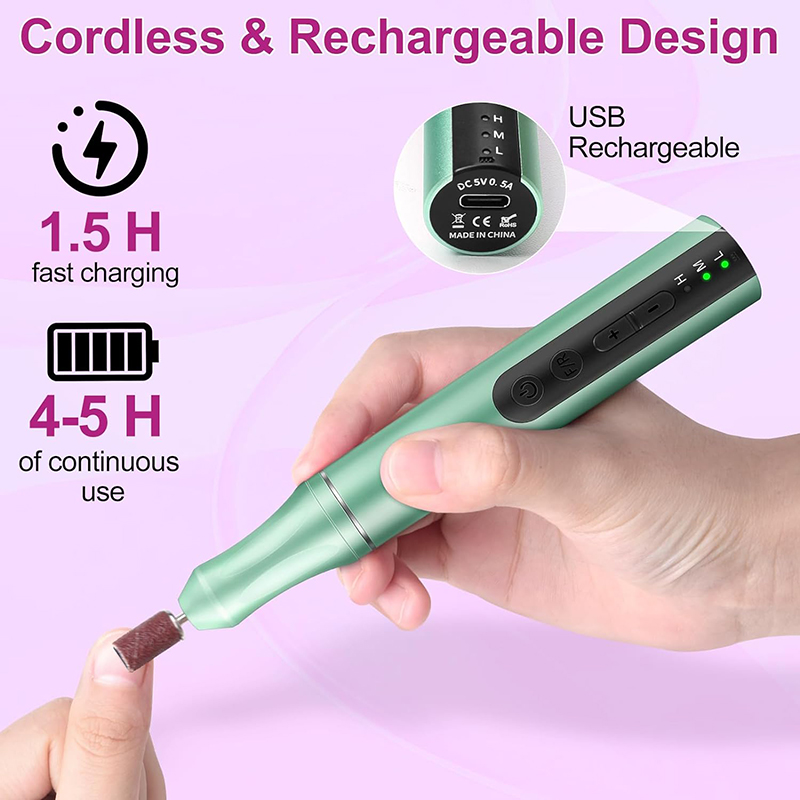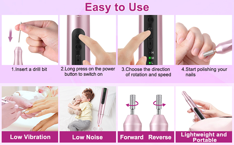 Det batteridrevne sømboresæt tilbyder mange slibebånd og forskellige bor til at vælge den rigtige til forskellige typer søm. For at skifte boret skal du blot trække det ud, erstatte det med det ønskede bor og trykke på tænd/sluk-knappen for at bruge det, hvilket gør det til en ideel gave til dine kvindelige venner. Hvis du har spørgsmål til dette produkt, er du velkommen til at kontakte os.