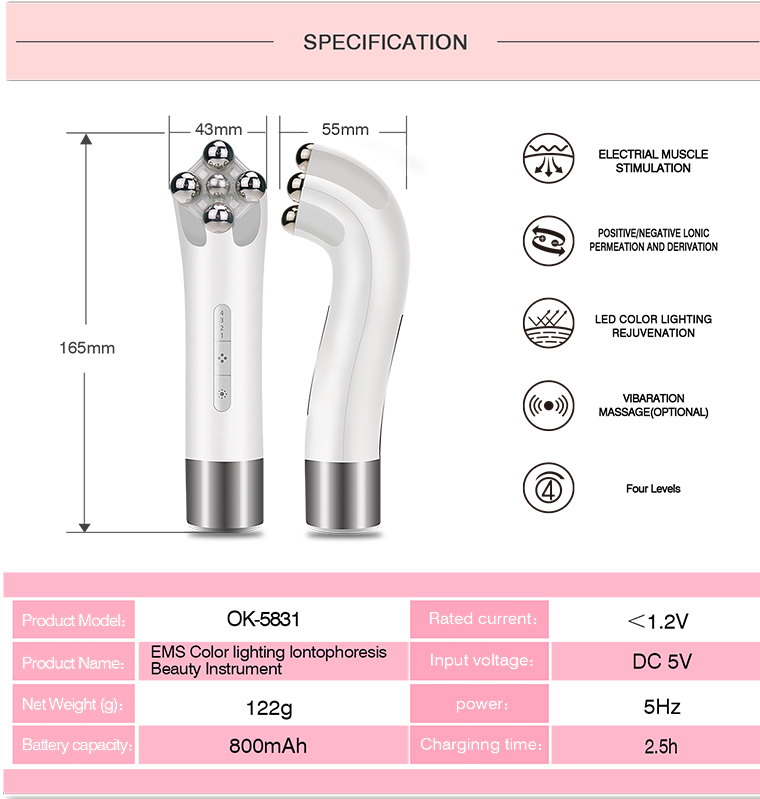 HVAD ER FORDELENE? -- Skønhedsmaskine er en multifunktionel anti-aldringsenhed, der inkluderer radiofrekvensteknologi (RF) med rød/blå lysterapi, EMS for at reducere linjer og rynker, forbedre hudpenetration og absorptionsevner osv.