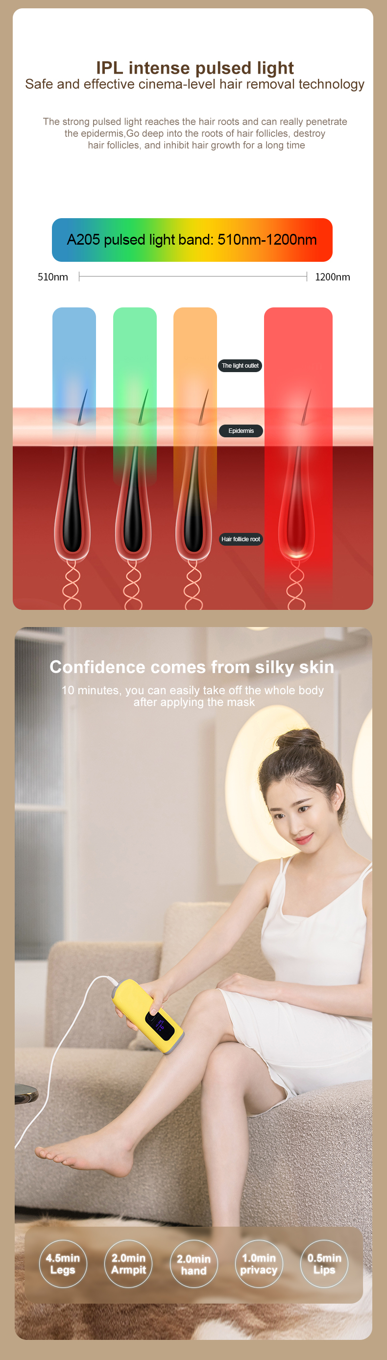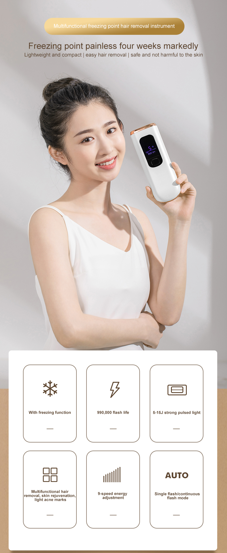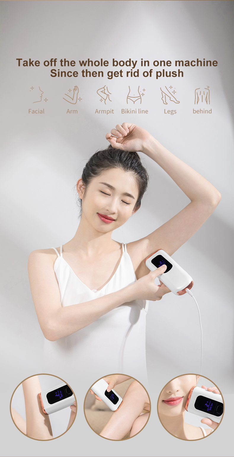 (Bemærk: 1, Ikke egnet til tatoveret og overgarvet hud, sårede områder og gravide. 2, Det er en plug-in enhed, hold venligst altid enheden tilsluttet til strøm under behandlingen. )