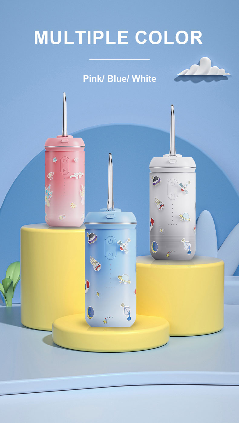 - Deep Cleaning: Equipped with 0.6mm ultra-fine dual water jets, the kids water dental flosser has a larger impact area and more uniform pressure. It can effectively achieve deep cleaning while protecting children's gums, cleaning tartar buildup.