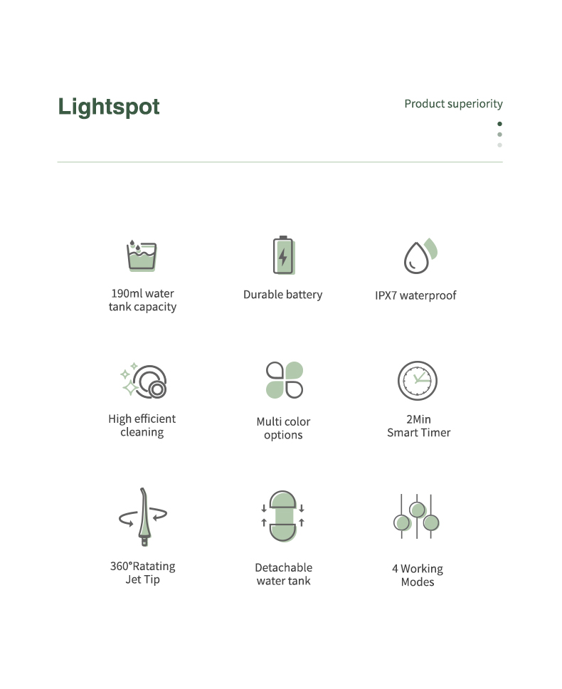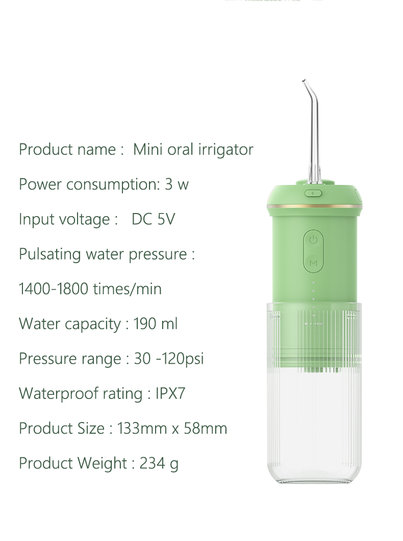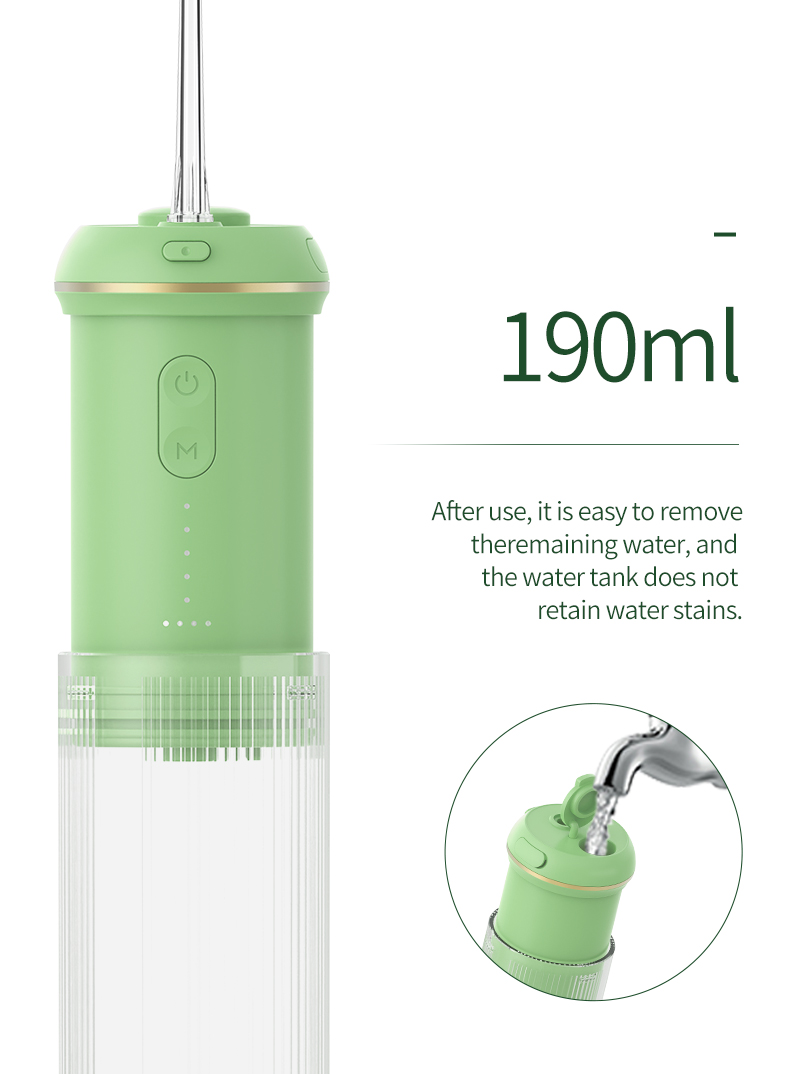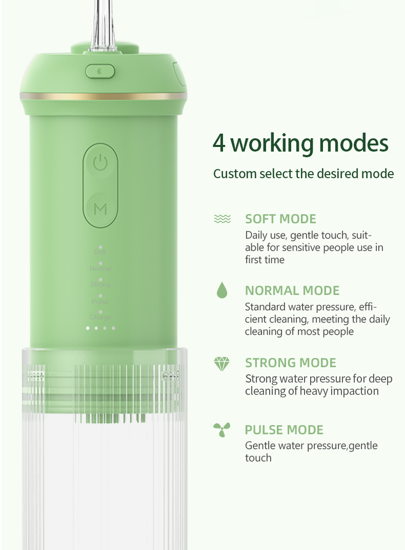 Dyb rengøring med stærkt tryk: Vandtråden anvender den nyeste pulsteknik til at tilbyde 4 tilstande med et trykområde mellem 30-90 Psi og pulsfrekvens på 1400-1800 gange/minut, for at tilbyde højintensivt vand, som renser 99,99% af tandspænding, specielt designet til paradentose, bøjler.