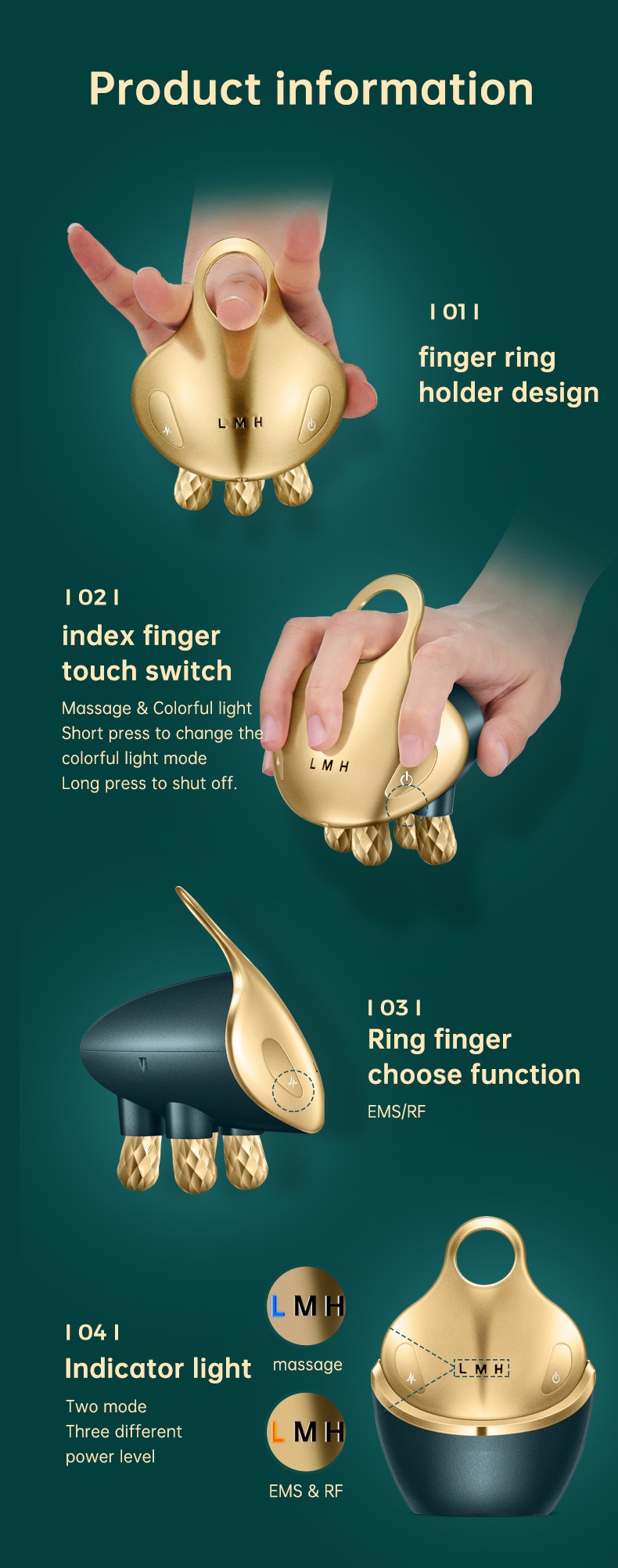 2. Massage+EMS+RF multifunktionel, 3 hastigheder og intensitet justerbar