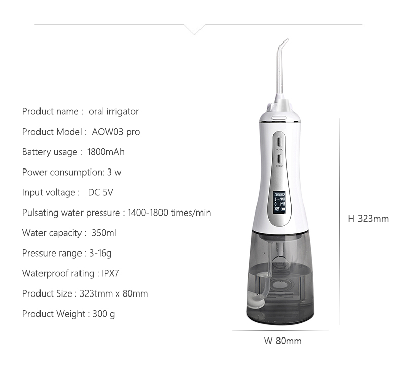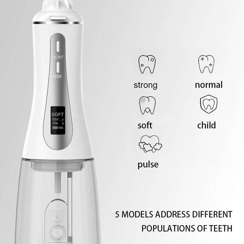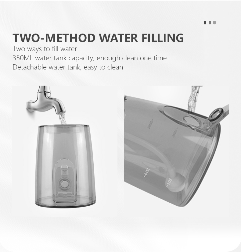 Denne vandtandtråd har en opgraderet 350 ml vandtank, dobbelt så stor kapacitet som andre gamle modeller, hvilket eliminerer behovet for hyppige genopfyldninger og gør din mundrensning mere bekvem og effektiv