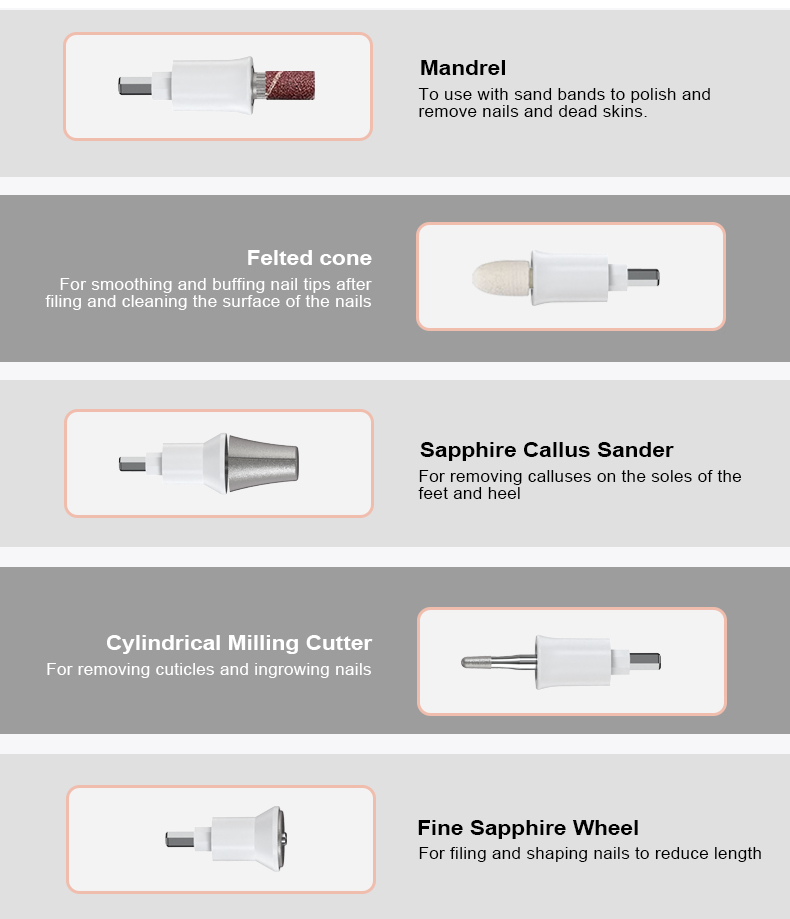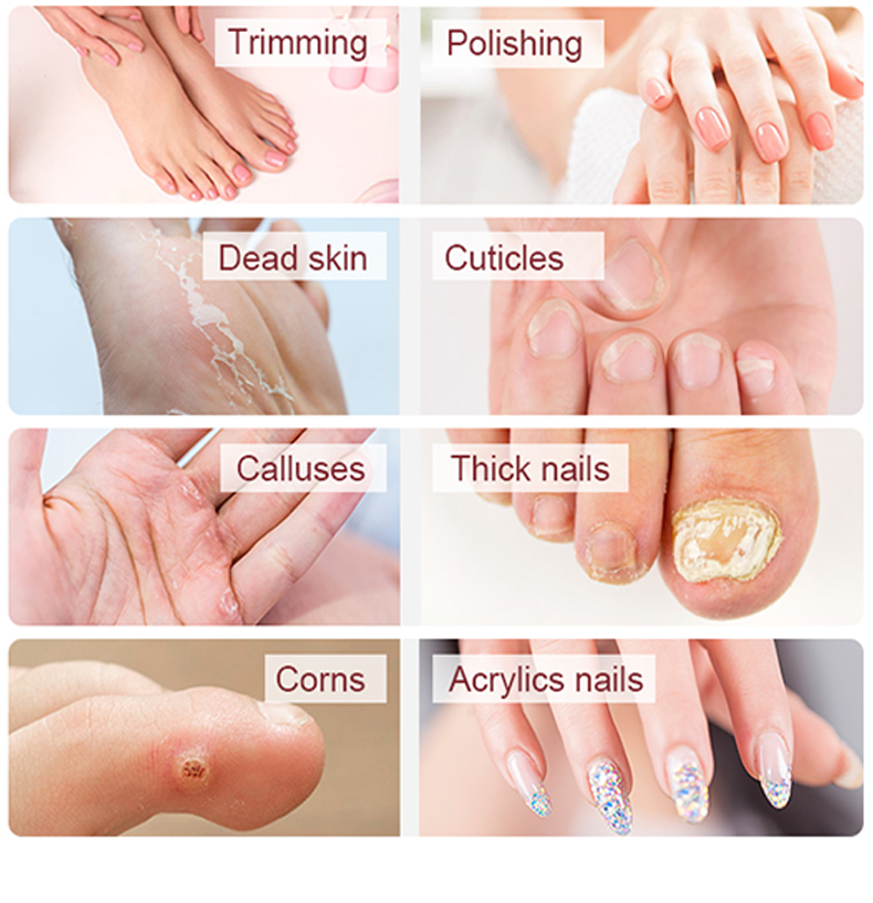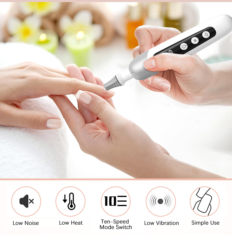 - 10 HASTIGHEDSINDSTILLINGER: Oplev kraften i vores elektriske manicuresæt, der byder på 10 progressive hastighedsindstillinger og alsidige rotationer med uret og mod uret. Efile-negleboremaskinen garanterer præcis filning på tykke fingernegle og tånegle og er skræddersyet til alle hudtyper, inklusive personer med diabetes