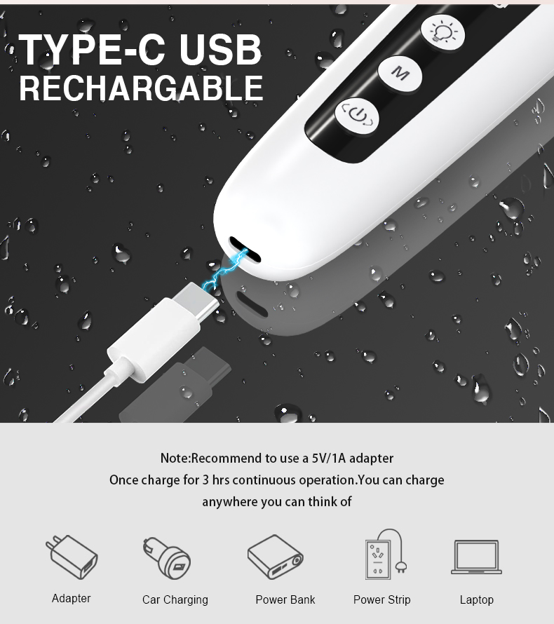 4:DC 5V 1A TYPE-C Opladningstid: 3-4 timer