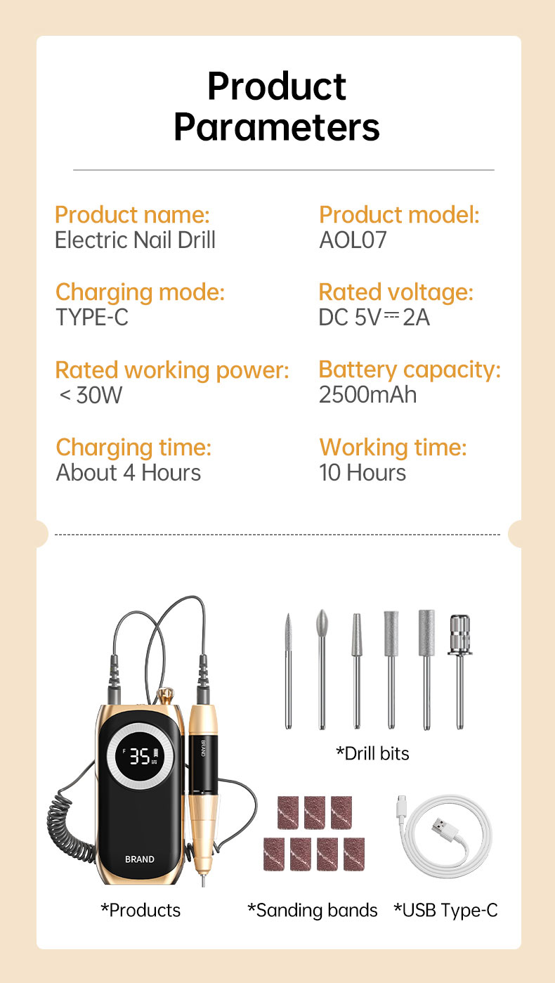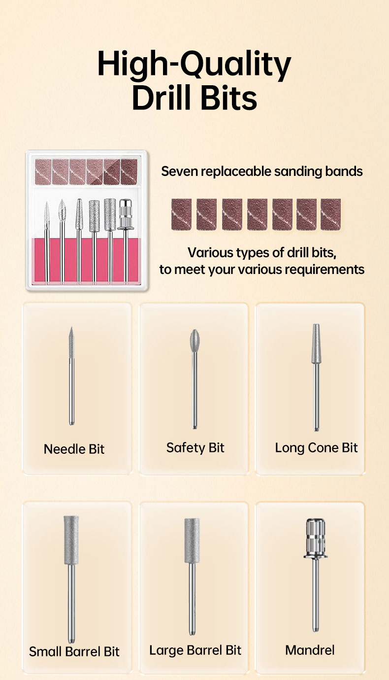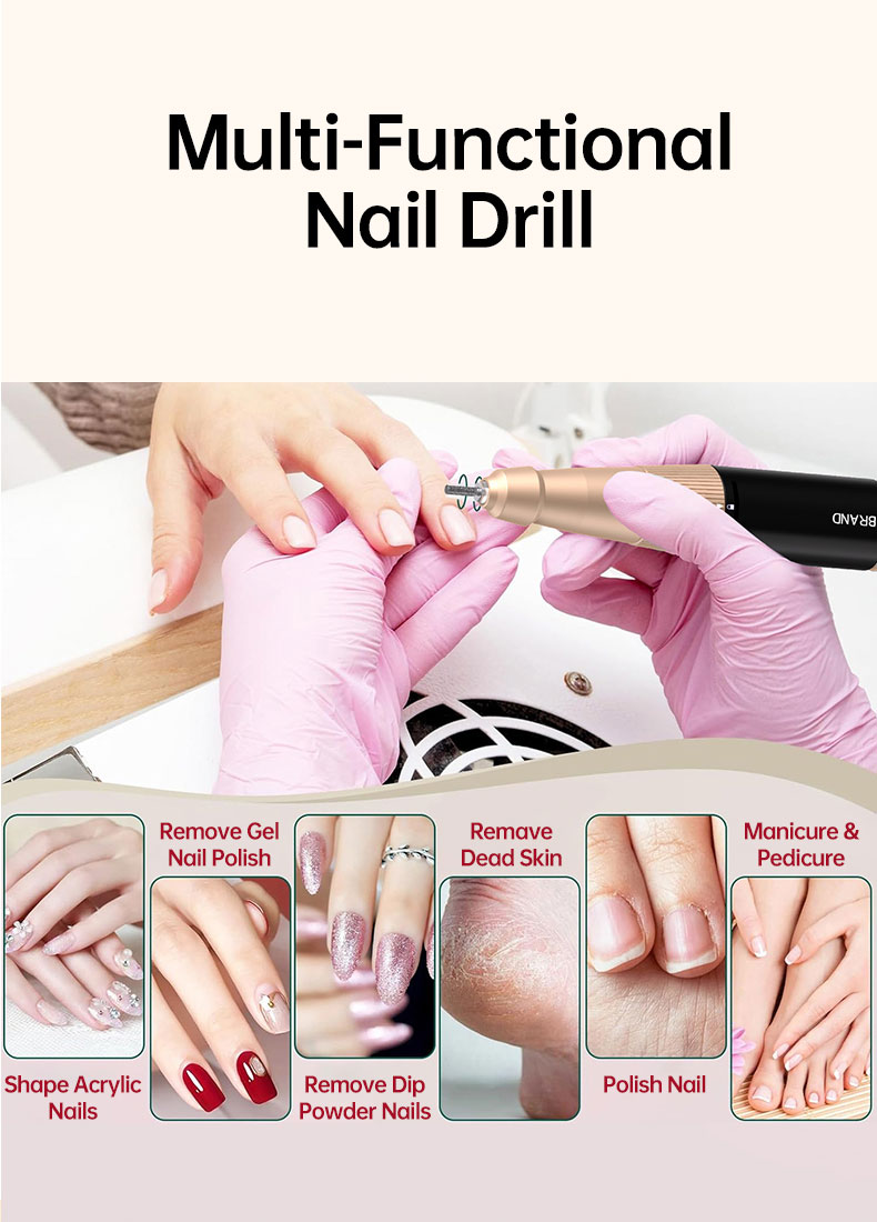 Rechargeable and Cordless: With a large battery capacity(2500mA), you can use this nail drill at anywhere anytime. Being fully charged for about 4 hours, the electric nail file will work up to 10 hours. The smart LCD screen will display the precious RPM and electricity. A Belt clip of the body case allows you to hang it on your belt on the waist and it is compact enough(6.08*2.94*0.98) to pack into your traveling bag or case.